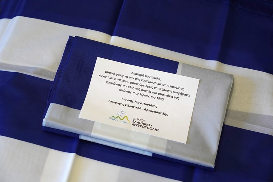 Εν όψει της Εθνικής επετείου και λόγω της απαγόρευσης των εορταστικών παρελάσεων, ο Δήμος Ελληνικού - Αργυρούπολης προμήθευσε τους μαθητές του με ελληνικές σημαίες προκειμένου να τις κρεμάσουν στα μπαλκόνια τους.