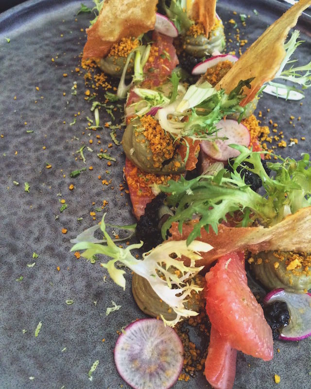 Το καλό που έχει το Mikaello είναι πως του αρέσει να παίζει με τις γεύσεις. Να ανακατεύει μπαχάρια και αρώματα, και να δημιουργεί συνδυασμούς που θα φτάνουν σε σημείο να σε εκπλήσσουν. Το έζησα με την σαλάτα quinoa με κάρδαμο, κρεμμύδι και κολοκύθα, και ακόμη πιο έντονο με το ορεκτικό σολομού. Ένας ολόφρεσκος μαριναρισμένος σολομός με αβοκάντο, χαβιάρι και λαχανικά ήταν ό,τι πιο δροσιστικό θα μπορούσες να δοκιμάσεις ένα από τα βράδια του καλοκαιριού που έρχεται. Συνεχίζοντας στο ίδιο μοτίβο και με τεράστια ευχαρίστηση, ήρθε μια αρκετά μεγάλη πίτσα με μαύρα τοματίνια, μοτσαρέλλα, πάρμα και ζύμη από χαρούπι, γιατί αν δεν το ξέρεις ήδη, το Mikaello ειδικεύεται στα διάφορα ψωμάκια που φτιάχνει. Γι’ αυτό και το burger με το καβούρι έχει το δικό του μαύρο ψωμί από μελάνι σουπιάς.