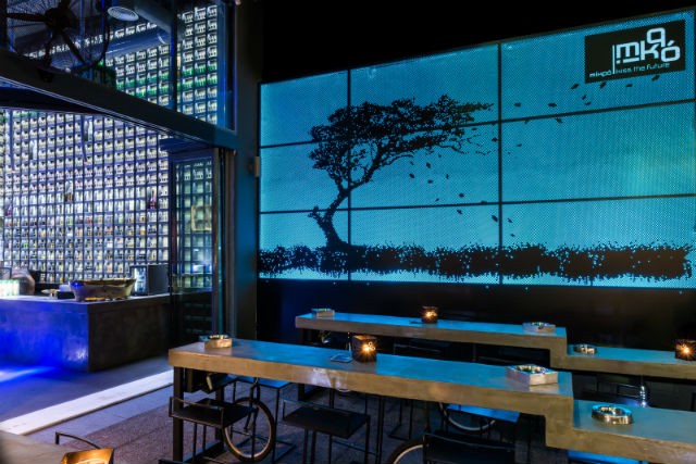 Όσον αφορά τον χώρο του Mikro, αυτός, σε πρώτη ανάγνωση, δικαιολογεί πλήρως το όνομά του. Είναι μακρόστενος και δεν έχει διαστάσεις γηπέδου ποδοσφαίρου, ωστόσο, από την άλλη, με ένα μαγικό τρόπο, δεν σου προκαλεί σε καμία περίπτωση ‘κλειστοφοβία’. Αντιθέτως το όλο πράγμα σου αποπνέει μια αίσθηση άπλας και ελευθερίας. Απόρροια του γεγονότος ότι είναι ψηλοτάβανο και ότι όλη η πρόσοψη του είναι ανοιχτή. Αδιαφιλονίκητο highlight είναι ο τεράστιος τοίχος πίσω από το bar όπου μπορείς, με την μουσική να παίζει στο τέρμα, να χαζεύεις τα εκατοντάδες μπουκαλάκια-μινιατούρες και πως το φως παίζει μαζί τους.