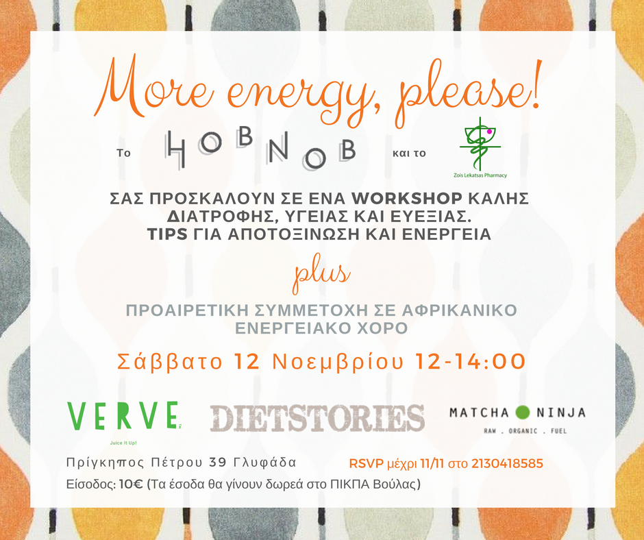 More energy, please: Ένα workshop διατροφής και υγείας με φιλανθρωπικό χαρακτήρα