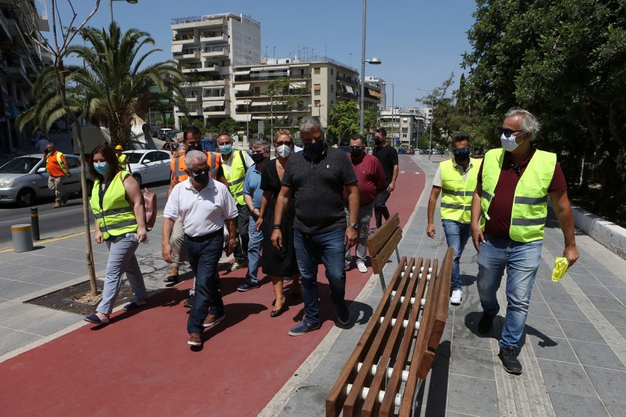 Ο Περιφερειάρχης Αττικής, συνοδευόμενος από την Αντιπεριφερειάρχη Νοτίου Τομέα Δήμητρα Νάνου, τον Δήμαρχο Νέας Σμύρνης Σταύρο Τζουλάκη, τον Διευθυντή Τεχνικών έργων της Περιφέρειας Αλέξανδρο Καλογερόπουλο, τον Γ.Γ του Δήμου Μιχάλη Χρηστάκη, την υπεύθυνη Δημοσίων Σχέσεων και Επικοινωνίας του Κλαίρη Δεληγιάννη και υπηρεσιακά στελέχη, επισκέφθηκαν επίσης τα έργα ανάπλασης στην Ομήρου και Παλαιολόγου, προϋπολογισμού 3,65 εκ ευρώ και τα έργα βελτίωσης και αποκατάστασης του υπερτοπικού άξονα οδού Αιγαίου –Κράτητος, προϋπολογισμού 3,594 εκ. ευρώ.
