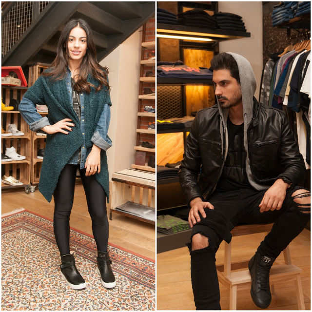Ξεκινώντας ένα fun ride στο καινούργιο New Cult κατάστημα, ο Δημήτρης φόρεσε ένα total Replay look και έναν μαύρο Seven Denim σωλήνα, ενώ η Μιρκέτα δίπλα του, επέλεξε να ντυθεί με ένα κολάν PCP, ένα Replay T Shirt με στάμπα και ένα jean πουκάμισο, Replay, με knitwear από την Agel Knitwear, και μποτάκια από την χειμερινή συλλογή της Replay.