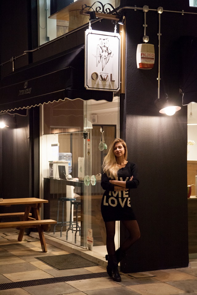 Πριν συναντήσω την ιδιαίτερη Δήμητρα, ιδιοκτήρτρια του Owl, η φάση μου ήταν πως -στα 25 μου- ήθελα να κάνω ένα ακόμη tattoo (είχα ήδη ένα μικρό στον λαιμό) μα δεν μπορούσα να αποφασίσω τι, πως και που. Μια ώρα μετά την πρώτη μας συνάντηση το ένα έγιναν τρία, χωρίς να αγχώνομαι για τα υπόλοιπα σκέλη της παραπάνω πρότασης αφού μου έβγαλε κάτι εντελώς δημιουργικό και ασφαλές.