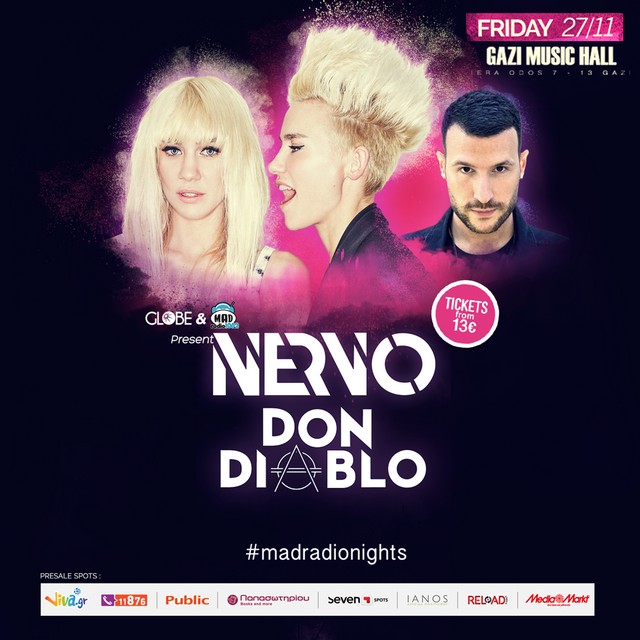 Λίγες ημέρες έμειναν για το μεγάλο event της αθηναϊκής νύχτας. Προλάβετε να προμηθευτείτε εισιτήρια για το show του #madradionights, που διοργανώνει η Globe και το Mad Radio 106,2 με τις NERVO και τον DON DIABLO.