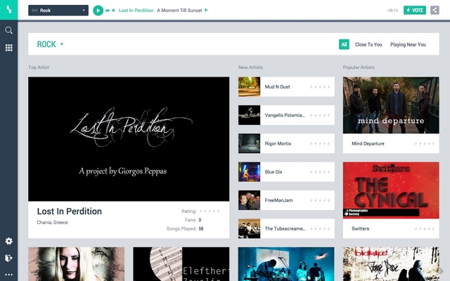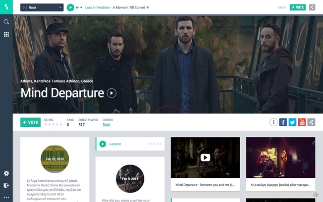 Κάνοντας κλικ πάνω σε μία μπάντα, ο ακροατής οδηγείται στη προσωπική της σελίδα (ένα παράδειγμα φαίνεται στη φωτογραφία που ακολουθεί), όπου μπορεί να δει συγκεντρωτικά τις πρόσφατες ενημερώσεις της στα social media (ειδήσεις, φωτογραφίες, video) και φυσικά να ακούσει την μουσική της.