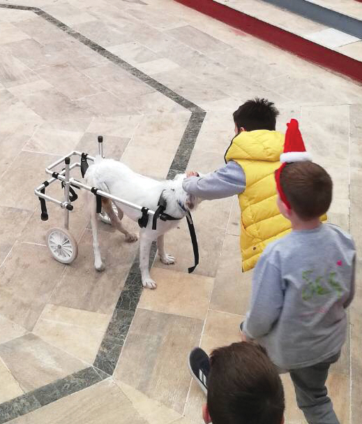 Ο Άντονι, το σκυλάκι που χάρη στα PET CITY και τον κο Τζιγκούρα Βασίλη, κατασκευαστή αμαξιδίων για ζώα, απέκτησε το δικό του αναπηρικό αμαξίδιο, είχε την τύχη να υιοθετηθεί από το Διαδραστικό Ευρωπαϊκό Σχολείο και έτσι πρόσφατα μεταφέρθηκε από το Φιλοζωικό Σωματείο Σπάρτης στο Δημοτικό Σχολείο «Δες» στη Βάρκιζα.