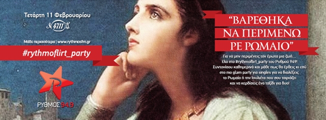 Ο Ρυθμός 949 μέχρι στιγμής σε ταξιδεύει με τις μουσικές επιλογές του. Πλέον θα σε ταξιδέψει και πραγματικά, αφού πρώτα σου βρει ταίρι στο πιο glam party για singles, την Τετάρτη 11 Φεβρουαρίου στο 4711! Το #rythmoflirt_party είναι προ των πυλών.