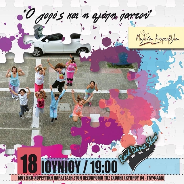 Στην πραγματικότητα πρόκειται για ένα event που γίνεται για πρώτη φορά στην Γλυφάδα, μια μουσικοχορευτική παράσταση που θα απολαύσουμε (χορεύοντας!) την Πέμπτη 18 Ιουνίου στις 19:00. Η σχολή χορού ‘Μελίνα Κοροβίλα’ μεταφέρει το χορό από τις αίθουσες στο δρόμο (γωνία Κύπρου και Γρ. Λαμπράκη) και προσκαλεί μεγάλους και μικρούς σε μια παράσταση γεμάτη αγάπη…μουσική…και φυσικά πολύ χορό! Γιατί τι καλύτερο από το να χορεύεις σε ανοιχτό χώρο;