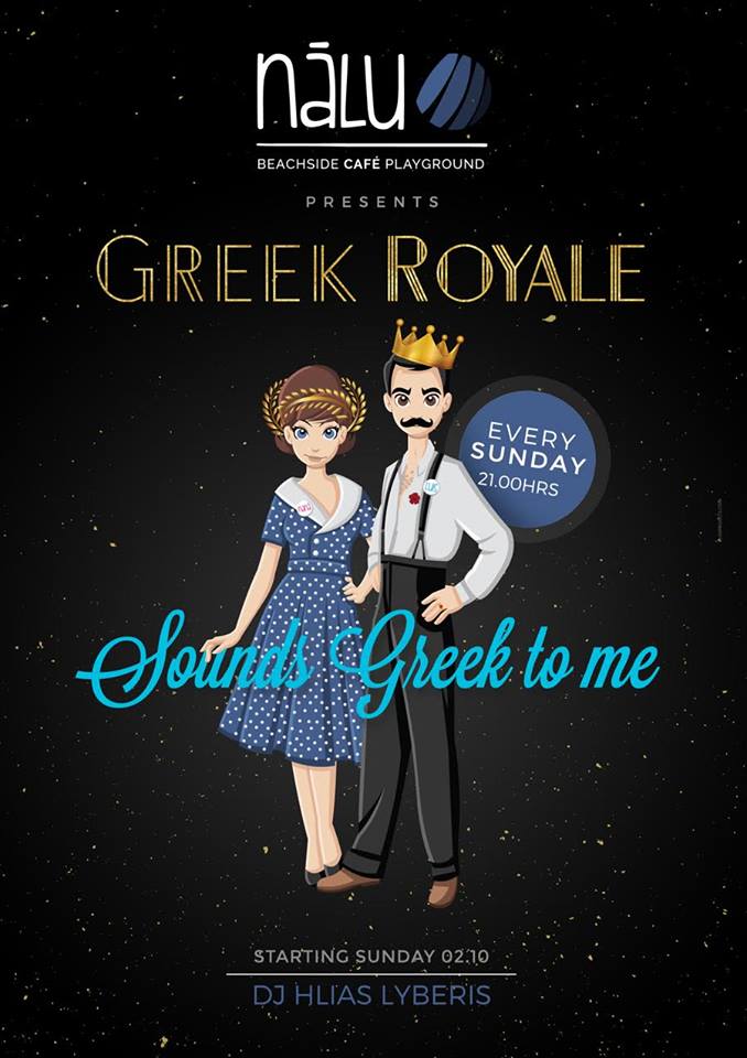 Το Nalu διοργανώνει κάθε Κυριακή βραδιές με ελληνική μουσική. Με τίτλο «Greek Royale», σε περιμένει με την παρέα σου κάθε Κυριακή στις 21:00 για ένα πάρτι που σε βοηθήσει να ξεχάσεις για λίγο πως την επόμενη ημέρα είναι Δευτέρα.