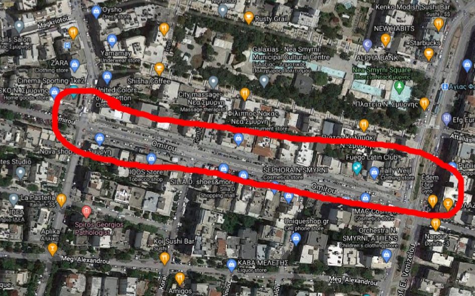 Εν πάση περιπτώσει, ο Guardian είχε γράψει, μεταξύ άλλων, πως στην πλατεία δεν μπαίνουν αυτοκίνητα, υπάρχουν συντριβάνια, καταστήματα, εστιατόρια και trendy καφέ και μπαρ «για όλες τις ηλικίες και τα μπάτζετ». Σημείωσε ότι η περιοχή προσφέρει πληθώρα επιλογών για διασκέδαση, σε ανοιχτούς χώρους κατά τα καλοκαίρια και εκτός της πλατείας, βρίσκεται το Αλσος, «μια μεγάλη πράσινη όαση με πεύκα και κυπαρίσσια, που ενδείκνυται για βόλτες, τζόκινγκ και γυμναστική στην ύπαιθρο». Να ζητήσω συγγνώμη από το εκ των κορυφαίων ευρωπαϊκών media, αλλά δεν σημείωσε μια πολύ σημαντική λεπτομέρεια: η Νέα Σμύρνη είναι ενδεχομένως η μόνη πόλη του πλανήτη που έχει ποδηλατόδρομο τριών τετραγωνικών μπλοκ. Θες να πούμε 800 μέτρων; Ας το πούμε έτσι. Θα στο δώσω σε δυο εκδοχές, να το καταλάβεις καλύτερα.