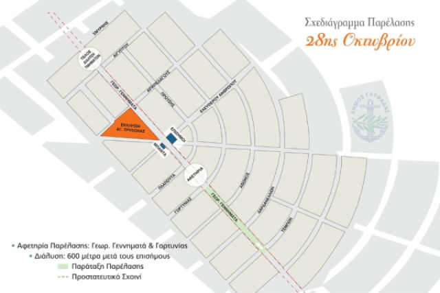 Η παρέλαση της Εθνικής Επετείου της 28ης Οκτωβρίου του Δήμου Γλυφάδας θα ξεκινήσει από την οδό Γεωρ. Γεννηματά και Γορτυνίας.