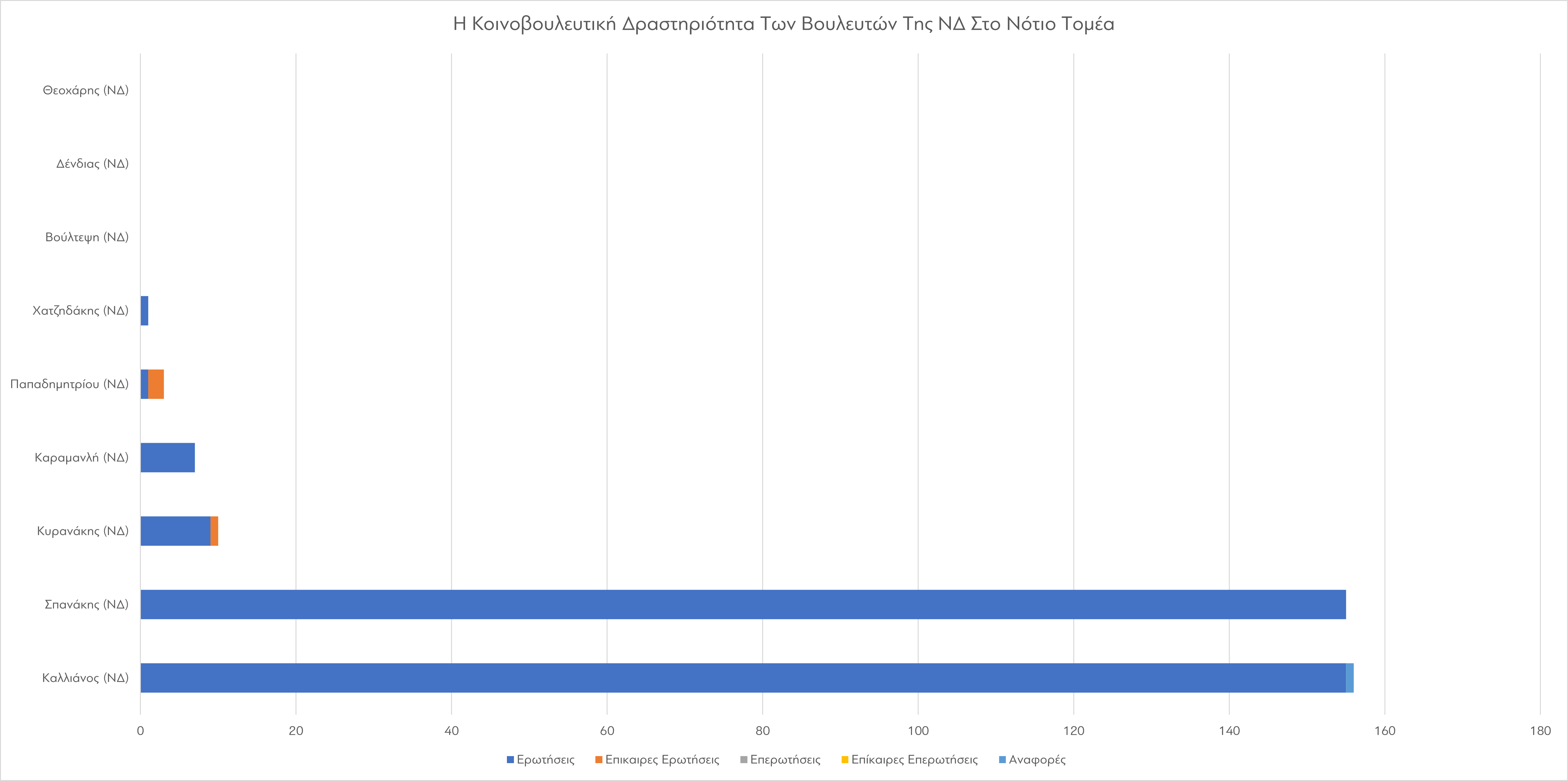 Ακολουθεί πίνακας με αναλυτικά στοιχεία για τη δραστηριότητα των βουλευτών του Νότιου Τομέα, με δεδομένα από το Vouliwatch: