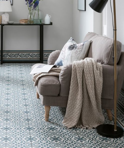 Λίγες εικόνες αρκούν για να αρχίσεις να φαντάζεσαι πως περπατάς με γυμνά πόδια πάνω στα πλακάκια με υφή ξύλου που αγκαλιάζουν τα τσιμεντοπλακάκια με μαροκινά σχέδια. Μαγειρεύεις στην κουζίνα σου, χαζεύοντας τα διακοσμητικά τουβλάκια στον τοίχο της και τσουγκρίζεις κρασί με τα αγαπημένα σου πρόσωπα.