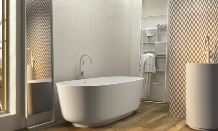 Μπαίνεις στο μπάνιο σου και γεμίζεις από τα χρώματα της ψηφίδας. Σε διαπερνά η γνώριμη μυρωδιά του φυσικού ξύλου από το έπιπλο μπάνιου, αγγίζεις ένα νιπτήρα corian και νιώθεις τα χέρια σου γεμάτα με κοχύλια της θάλασσας.