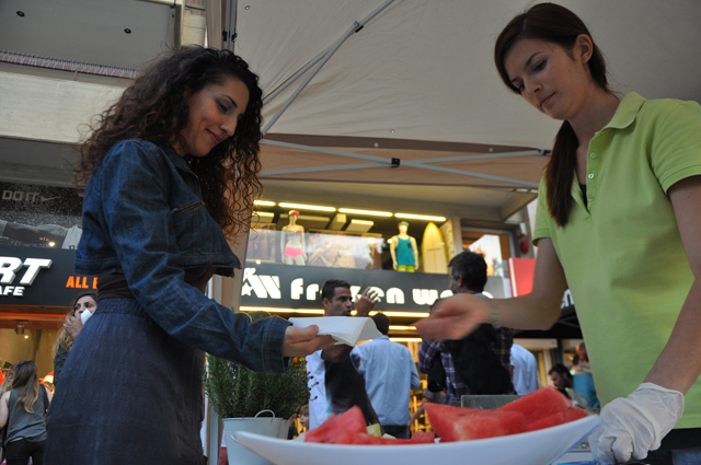 Εκεί όπου το Home Pizza προσέφερε λαχταριστά κομμάτια πίτσας στους περαστικούς. Οι πλέον τυχεροί έτρωγαν και δεύτερο. Ένα πριν μπουν να ρίξουν μια ματιά στα μαγιό του Yamamay και ένα μετά, με σακούλες στα χέρια.