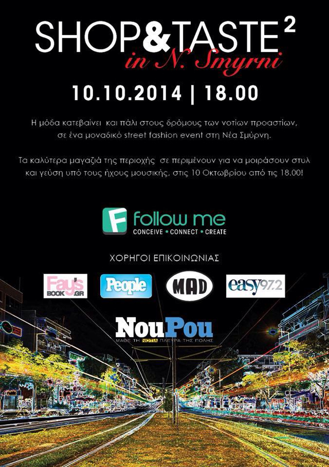 Αν ήρθες στο προηγούμενο Shop & Taste στη Γλυφάδα, τότε ξέρεις πως πρόκειται για την απόλυτη γευστική εμπειρία shopping! Αν όχι, καιρός να τη ζήσεις, αυτή τη φορά στη Νέα Σμύρνη, την Παρασκευή 10 Οκτωβρίου.