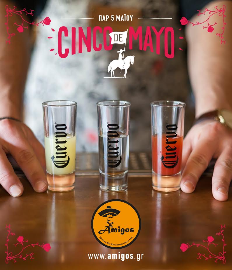 Το βράδυ της Παρασκευής 5 Μαΐου τα Amigos, στη Γλυφάδα και στη Ν.Σμύρνη σε περιμένουν για να γιορτάσετε με ένα ξεχωριστό τρόπο, την «Cinco de Mayo»!
