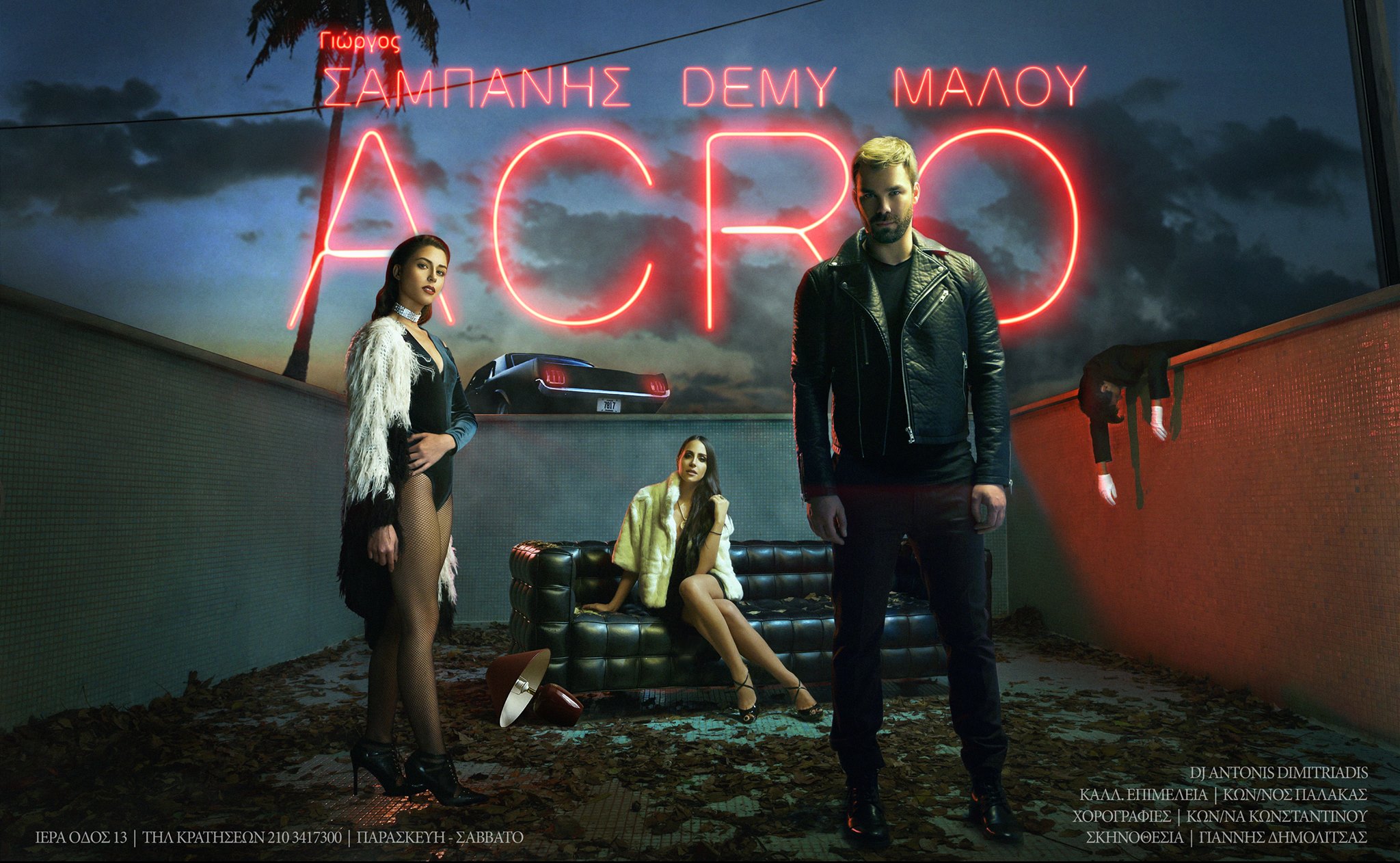 Τα τελευταία χρόνια Acro Γιώργος Σαμπάνης έχουν δημιουργήσει το απόλυτο μουσικό δίδυμο στο κέντρο της Αθήνας. Η συνεργασία τους συνεχίζεται για τέταρτη συνεχόμενη χρονιά και κάθε Παρασκευή και Σάββατο ο αγαπημένος καλλιτέχνης δίνει τον καλύτερό του εαυτό έχοντας στο πλευρό του τη Μαλού και τη Demy.