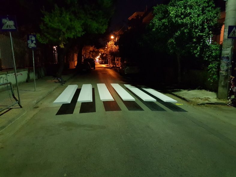 Η κάθε διάβαση μοιάζει να αιωρείται πάνω από τον δρόμο, δημιουργώντας μια οφθαλμαπάτη που είναι ορατή από τους οδηγούς αυτοκινήτων, με στόχο να μειώνουν ταχύτητα πλησιάζοντας στα σχολεία. Την ιδέα αυτή έχουν υλοποιήσει αρκετοί φορείς οδικής ασφάλειας σε διάφορες χώρες ανά τον κόσμο σημειώνοντας θετικά αποτελέσματα όπου εφαρμόστηκαν.