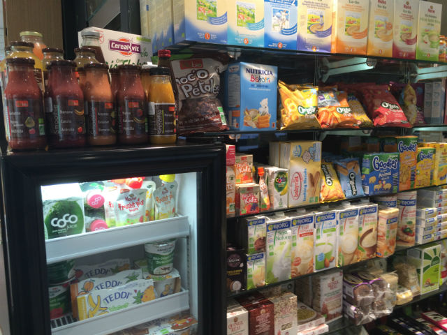 ‘Εδώ μπορείς να βρεις ποικιλία από οργανικά finger food που μπορούν να καταναλώσουν από μωρά έξι μηνών και πάνω μέχρι ενήλικες. Είναι όλα βιολογικά και όλα πιστοποιημένα, χωρίς πρόσθετα, ενώ πολλά είναι και χωρίς γλουτένη. Επίσης έχουμε οργανικές κρέμες και ρυζάλευρα από διαπιστευμένες οργανικές εταιρείες, ενώ στο ψυγείο υπάρχουν βιολογικά παιδικά γιαούρτια χωρίς ζάχαρη, με γεύση βανίλια, σοκολάτα ή με φρούτα, βιολογικά ζελεδάκια φρούτων, βιολογικοί χυμοί και χυμοί από αλεσμένα φρούτα (που είτε τους ρουφάει το παιδί, είτε τους δίνουμε με το κουτάλι) και smoothies. Ουσιαστικά είναι ένα mini section του φαρμακείου που θυμίζει κατάστημα με βιολογικά προϊόντα, με εξειδίκευση στα παιδιά. Ας πούμε απλά ότι ότι έχει σχέση με βιολογικά τρόφιμα, για παιδιά ή για μεγάλους, το καλύπτουμε’