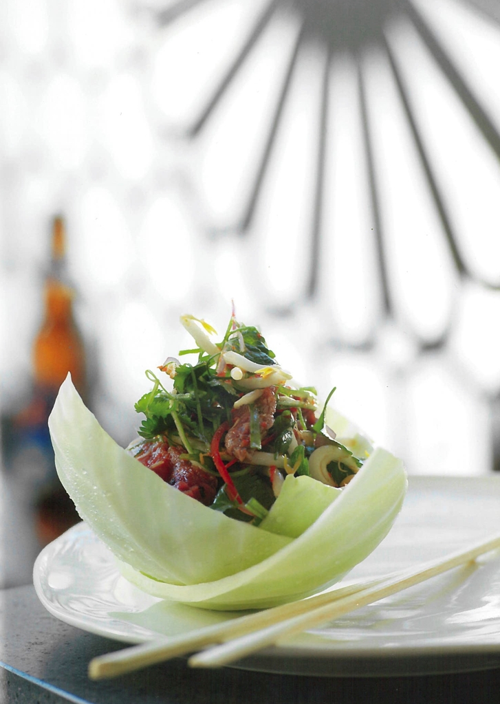 Από τα πιο δημοφιλή πιάτα του μενού είναι η σαλάτα με πάπια και καρπούζι, τα noodles με αστακό, οι γαρίδες tempura τυλιγμένες σε φύλλα hoba και η τραγανή πάπια με pancakes. Από τα επιδόρπια ξεχωρίζουν το λεμονόχορτο μπρουλέ και η γρανίτα από λίτσι.