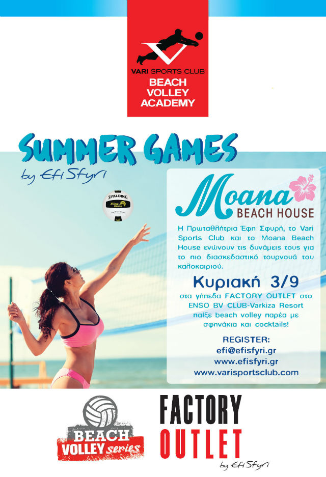 Το Σάββατο 2 Σεπτεμβρίου και τη Κυριακή 3 Σεπτεμβρίου στη πιο αγαπημένη παραλία της Αθήνας, η πρωταθλήτρια Eφη Σφυρή το Vari Sports Club και το Moana Beach House ενώνουν τις δυνάμεις τους για το πιο διασκεδαστικό τουρνουά του καλοκαιριού.