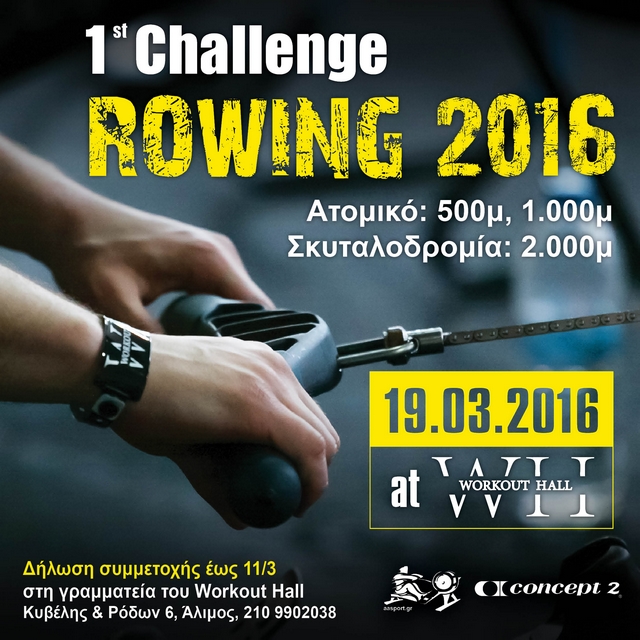 Στο Workout Hall το έριξαν στην κωπηλασία. Και καλά κάνουν! Αυτό το Σάββατο μάλιστα διοργανώνουν τον πρώτο αγώνα Indoor Rowing για το 2016, συνεχίζοντας τον θεσμό που ξεκίνησε την περασμένη χρονιά και συνεχίζεται και φέτος.