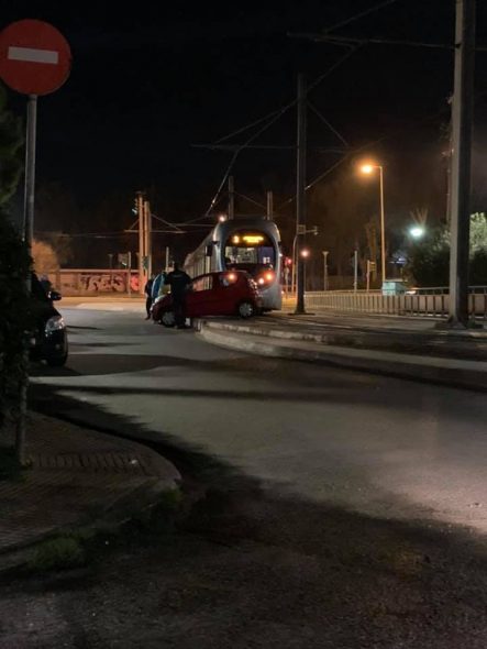 Το τραμ κατευθυνόταν προς τη Γλυφάδα, όταν ο μηχανοδηγός είδε ξαφνικά το αυτοκίνητο να κινείται πάνω στις γραμμές. Ο οδηγός επιχείρησε να στρίψει αριστερά και το ΙΧ κόλλησε στο σημείο με αποτέλεσμα να έρθει γερανός και να το «σηκώσει».