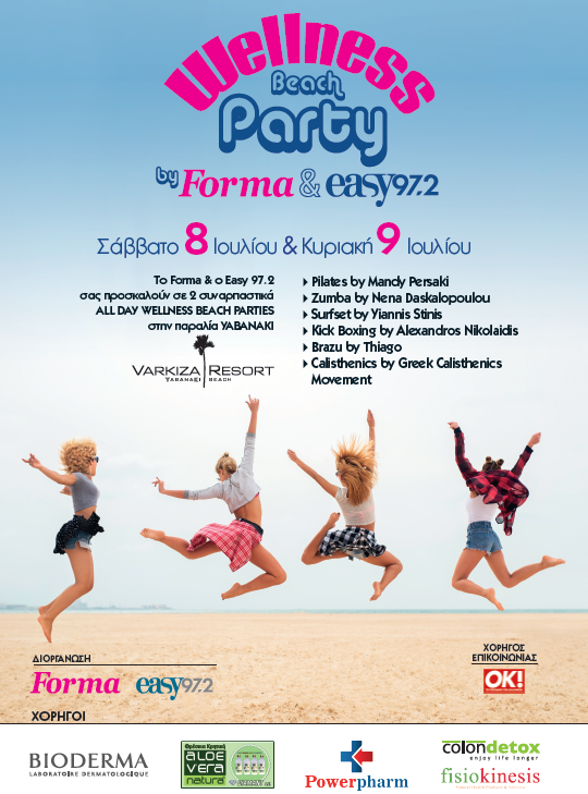 Το περιοδικό Forma και ο ραδιοφωνικός σταθμός EASY 97.2 διοργανώνουν με την υποστήριξη του περιοδικού ΟΚ!, ένα διήμερο «Wellness Beach Party» το Σάββατο 8 Ιουλίου και την Κυριακή 9 Ιουλίου στην παραλία YABANAKI, στο Varkiza Resort.