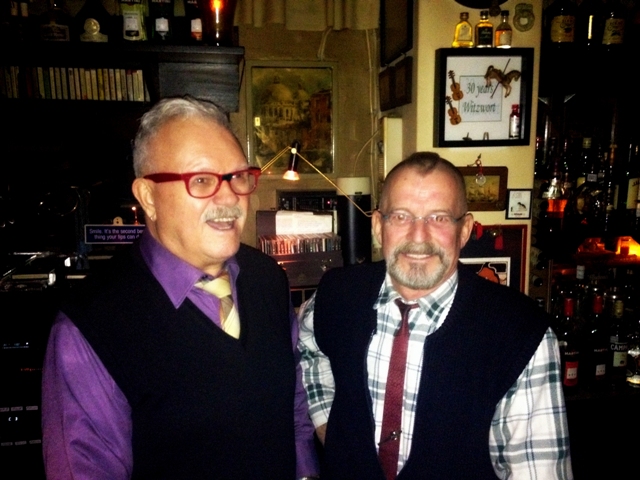 Διακόπτω για λίγο την κουβέντα με τον Μιχάλη για να πάμε στον Ρόνι και να τους βγάλω μαζί φωτογραφία, είναι μέσα από την μπάρα, «είναι ο ντιτζέι», μου λέει ο Μιχάλης γελώντας. «Βάζω και βινύλια κάποιες Τρίτες και γενικά αν κάποιος ζητήσει κάποιο τραγούδι που δεν υπάρχει σε cd», λέει ο Ρόνι με την χαριτωμένη έντονη προφορά του, ξέρεις αυτή με τα τραχιά ρο. Τους βγάζω φωτογραφία και μετά ο Μιχάλης μου λέει για τους θαμώνες και για τα χρόνια που δουλεύει το μαγαζί. «Είμαστε ανοιχτά από τις 5 Ιουνίου του 1982, περίπου 33 χρόνια, κάθε 10 χρόνια κάνουμε πάρτι και κερνάμε σαμπάνιες», μου δείχνει ένα καδράκι «να αυτό μας το έφτιαξε μια πελάτισσα για τα 30 χρόνια μας».