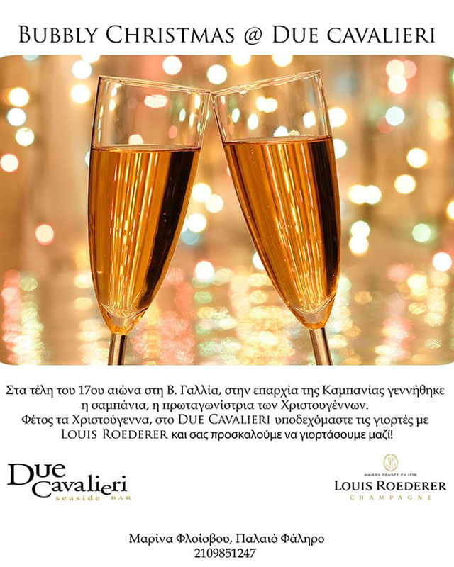 Στο Due Cavalieri τα Χριστούγεννα όχι μόνο ξεκίνησαν νωρίς, αλλά διαρκούν και έναν ολόκληρο μήνα. Ας σηκώσουμε το ποτήρι της σαμπάνιας μας και ας πιούμε σε αυτό!