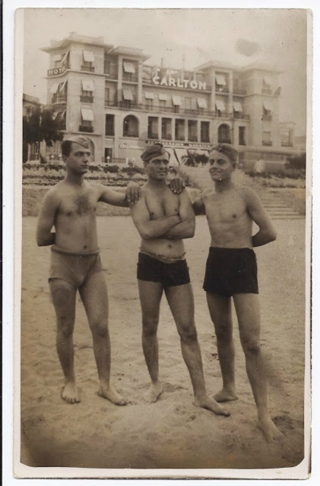 Φωτογραφία του ΚΑΡΛΤΟΝ που έχει ληφθεί στις 5-7-1937 με 3 φανταράκια στην πλαζ μπροστά στο ξενοδοχείο