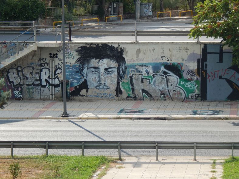 Πρόκειται για την απεικόνιση ενός προσώπου τόσο γνώριμου, μα παράλληλα εξίσου άγνωστου στους περισσότερους περαστικούς. Αυτό, ανήκει σε έναν νέο που, όπως μας πληροφορούν οι τρεις δημιουργοί του κομματιού, «έφυγε άδικα στις 28/3/2005». Μπορεί το σημείο που επέλεξαν οι άνθρωποι πίσω από αυτό να βοήθησε πολύ ώστε να θεωρείται πλέον κλασικό (σκεφτείτε πόσοι άνθρωποι περνάνε καθημερινά από εκεί), όμως, κάποιος που δεν γνωρίζει την ιστορία πίσω από αυτό μπορεί να πιστέψει ότι αποτελεί φόρο τιμής σε κάποιον που έχασε τη ζωή του σε τροχαίο. Ωστόσο, το πιο διάσημο γκραφίτι των νοτίων προαστίων έχει ένα πολύ διαφορετικό background.