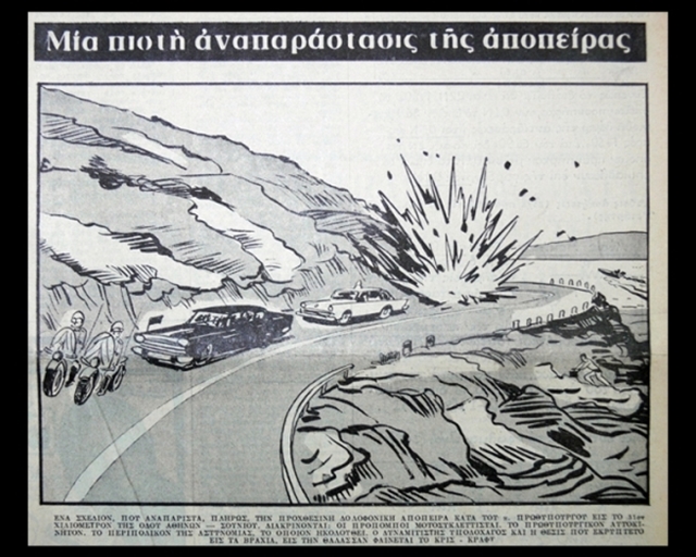 Ο βιογράφος Κώστας Μαρδάς, έχει καταγράψει την αφήγηση του ίδιου του Παναγούλη: «Θυμάμαι σαν να είχα μισοκοιμηθεί ανάμεσα στους βράχους. Από τις κινήσεις των αστυνομικών καταλαβαίνω ότι το αυτοκίνητο πρόκειται να περάσει. Νάτο. Φαίνεται στο βάθος του δρόμου. Μπροστά είναι οι μοτοσυκλετιστές, αμέσως κατόπιν ένα αυτοκίνητο της αστυνομίας, πίσω το αυτοκίνητο της Ασφάλειας. Στη μέση το αυτοκίνητο που με ενδιαφέρει. Ενα αυτοκίνητο μαύρο. Χάθηκαν πάλι σε μία στροφή. Σηκώνομαι λίγο για να δω πότε θα περάσει τη στροφή. Χαίρομαι που το χέρι μου, που κρατάει το καλώδιο, δεν τρέμει καθόλου…Τα μάτια μου πάντα καρφωμένα στο δρόμο. Η συνοδεία ξαναφάνηκε. Πλησιάζει. Πλησιάζει πάντοτε πιο πολύ. Το μαύρο αυτοκίνητο μεγαλώνει. Το χέρι μου κάνει την επαφή. Πετιέται ένας μεγάλος σωρός από χώματα και πέτρες. Οι νάρκες έχουν εκραγεί. Εγώ το έκανα, εγώ που δεν μπορώ να σκοτώσω άνθρωπο. Εγώ που πρέπει, έπρεπε να σκοτώσω τον τύραννο… Αραγε πέτυχα; Με βασανίζει αυτό το ερώτημα».