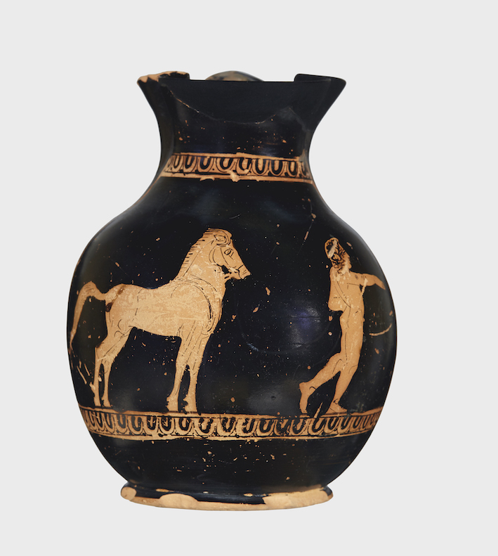 Ανάμεσα στα τόσα έργα που ταξίδεψαν από κάθε άκρη του κόσμου, μεγάλης ιστορικής σημασίας έκθεμα ένας αμφορέας από ανασκαφή στη Γλυφάδα, που περιείχε το λείψανο ενός παιδιού και εκτέθηκε τότε για πρώτη φορά. Στο αγγείο, που αποδίδεται στο ζωγράφο Λυδό, έναν από τους σημαντικότερους ζωγράφους της αττικής μελανόμορφης τεχνοτροπίας, απεικονίζεται ένας νεαρός ιπποκόμος που ιππεύει ένα άλογο, καθώς οδηγεί ένα δεύτερο.
