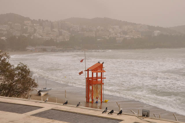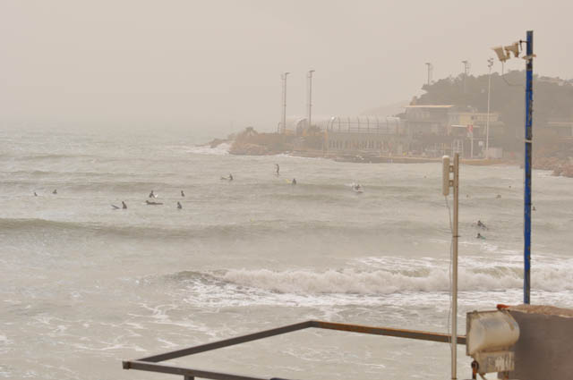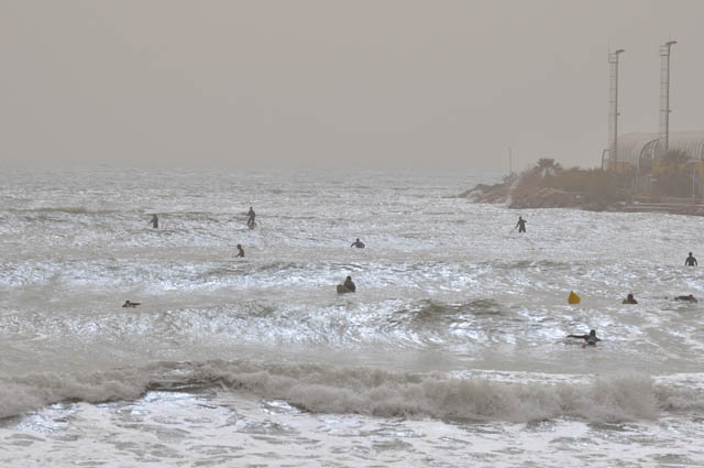 Με το πέπλο της Αφρικανικής σκόνης πάνω από τα νότια προάστια και τον καιρό αφόρητα μουντό, η ακτή της Βουλιαγμένης γέμισε κι αυτή την Κυριακή με σανίδες.