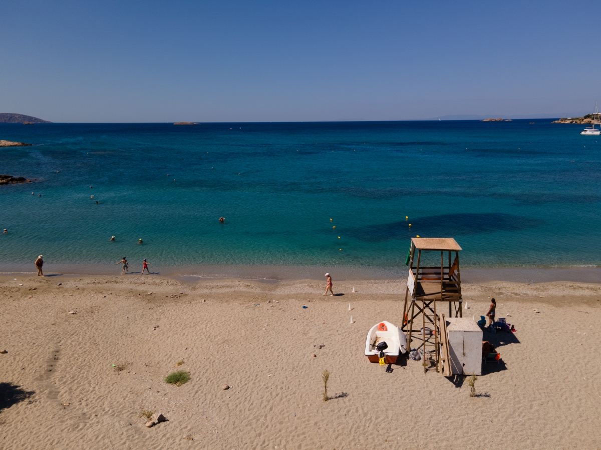 Η παραλία είναι αμμώδης και με ρηχά νερά, γεγονός που την καθιστά ιδανική επιλογή για οικογένειες με παιδιά. Παράλληλα, υπάρχει αρκετός χώρος για παιχνίδια, ρακέτες ή απλώς μια βόλτα στην ακροθαλασσιά με το βλέμμα στον Σαρωνικό.