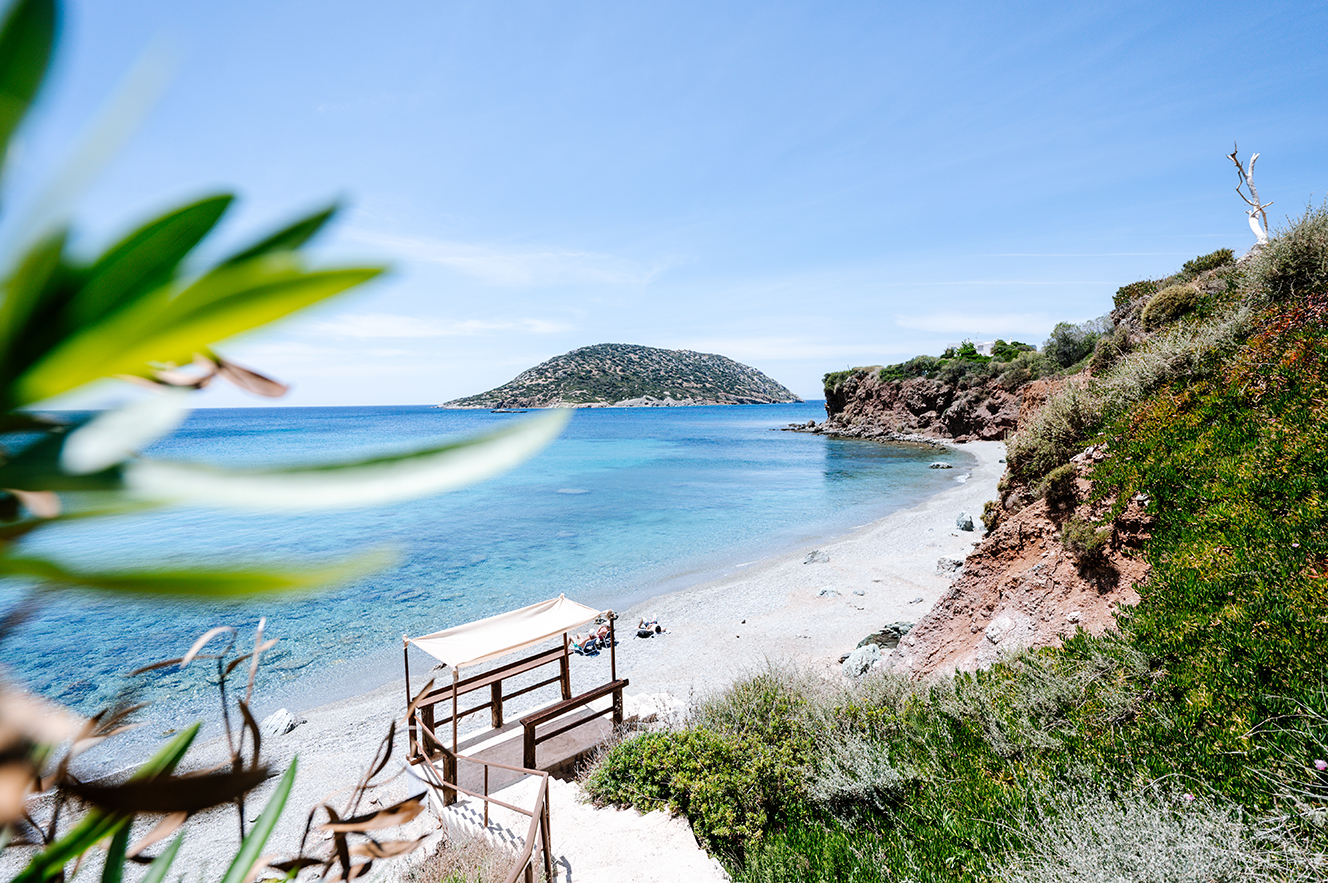 Κατεβαίνοντας τα Σκαλάκια της Αναβύσσου βρίσκεσαι ξαφνικά σε μια πανέμορφη, καλά κρυμμένη παραλία, με λευκή άμμο και καταγάλανα νερά. Plus: Θα πιεις και τα cocktails σου στο beach bar στην κορυφή του βράχου!