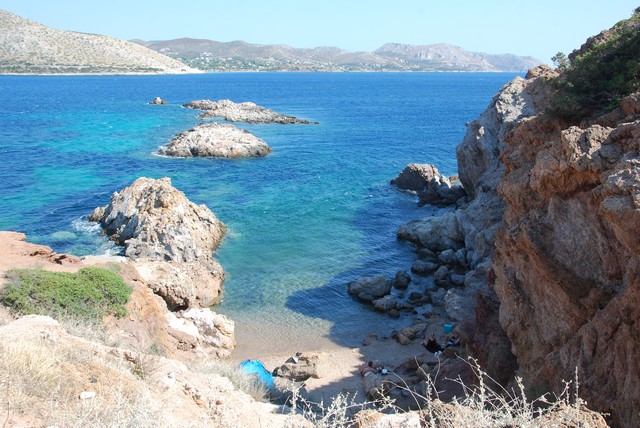 Μετά το εκκλησάκι του Αγίου Νικολάου, θα ακολουθήσεις το μονοπάτι που ξεχωρίζει. Αυτό θα σε οδηγήσει σε ένα σημείο που είτε πρέπει να πας δεξιά είτε αριστερά. Αν πας δεξιά θα δεις να ξεπροβάλλει μπροστά σου μια παραλία διαμάντι. Πρέπει να προσέξεις λίγο πώς θα κατέβεις αλλά αυτή η προσπάθεια θα αποζημειωθεί. Εκπληκτικά νερά που θυμίζουν Αμοργό, μερικά βράχια για να κάνεις βουτιές και μια τρομερή φυσική σκιά που προσφέρει ο βράχος. Πήγαινε νωρίς και για να πιάσεις τη θέση σου στα λίγα τετραγωνικά αλλά και για να ευχαριστηθείς ήλιο αφού μετά το μεσημέρι αρχίζει να κρύβεται σιγά σιγά.