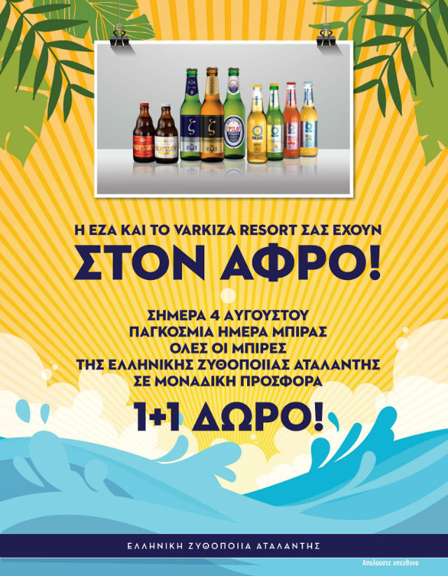 Δείτε όλους τους παραπάνω ανθρωπότυπους παραλίας και δοκιμάστε όλη την γκάμα από μπίρες της ΕΖΑ στο Varkiza Resort. Και μάλιστα, ειδικά για την Παγκόσμια Μέρα Μπίρας, σε μια μοναδική προσφορά 1+1 δώρο.