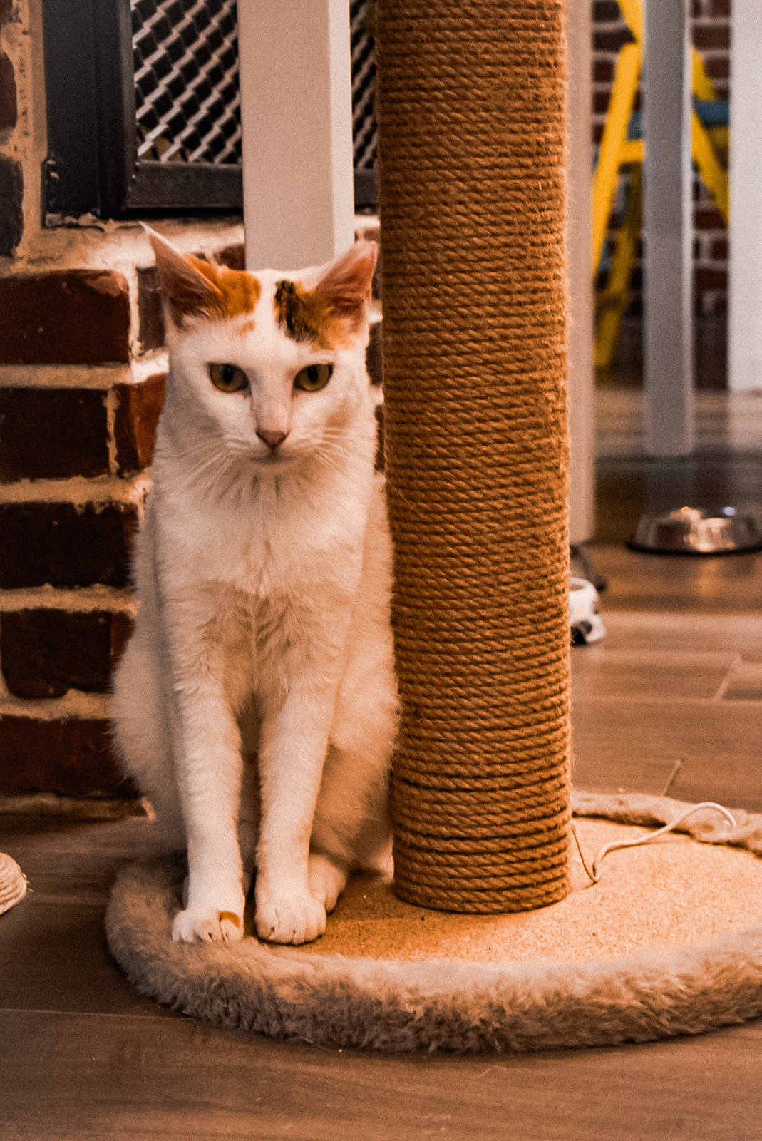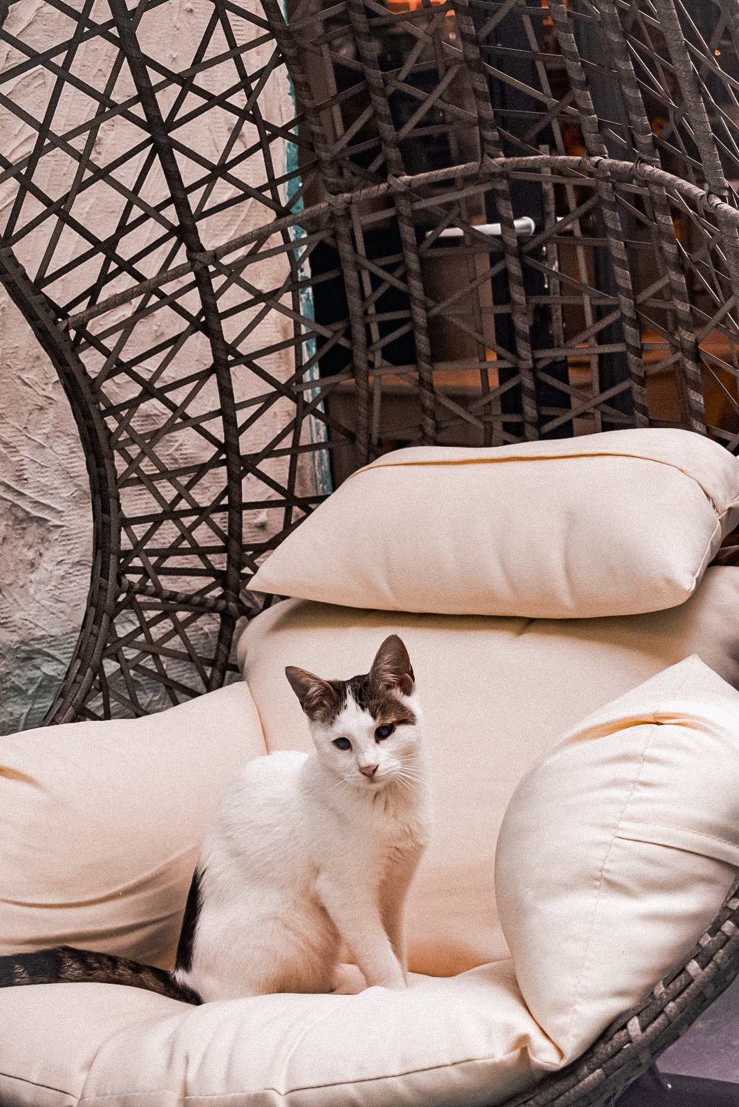 Η Ναταλί στη συνέχεια μοιράστηκε μαζί μου και μια πολύ τρυφερή στιγμή με μία από τις γατούλες του café. «Πριν από λίγο καιρό, καλωσορίσαμε το παιδάκι μας. Όταν ήμουν έγκυος, ο Jordan, ο γατούλης μας εδώ, με πλησίαζε, έπαιρνε αγκαλιά την κοιλιά μου και κοιμόταν πάνω μου. Έχουν τρομερή ενσυναίσθηση οι γάτες». Οι δυο τους, φυσικά, έχουν και δικές τους γατούλες, τη Νιρβάνα, η οποία είναι τρεισήμισι χρόνων και τον Εμίρη, ενός έτους.