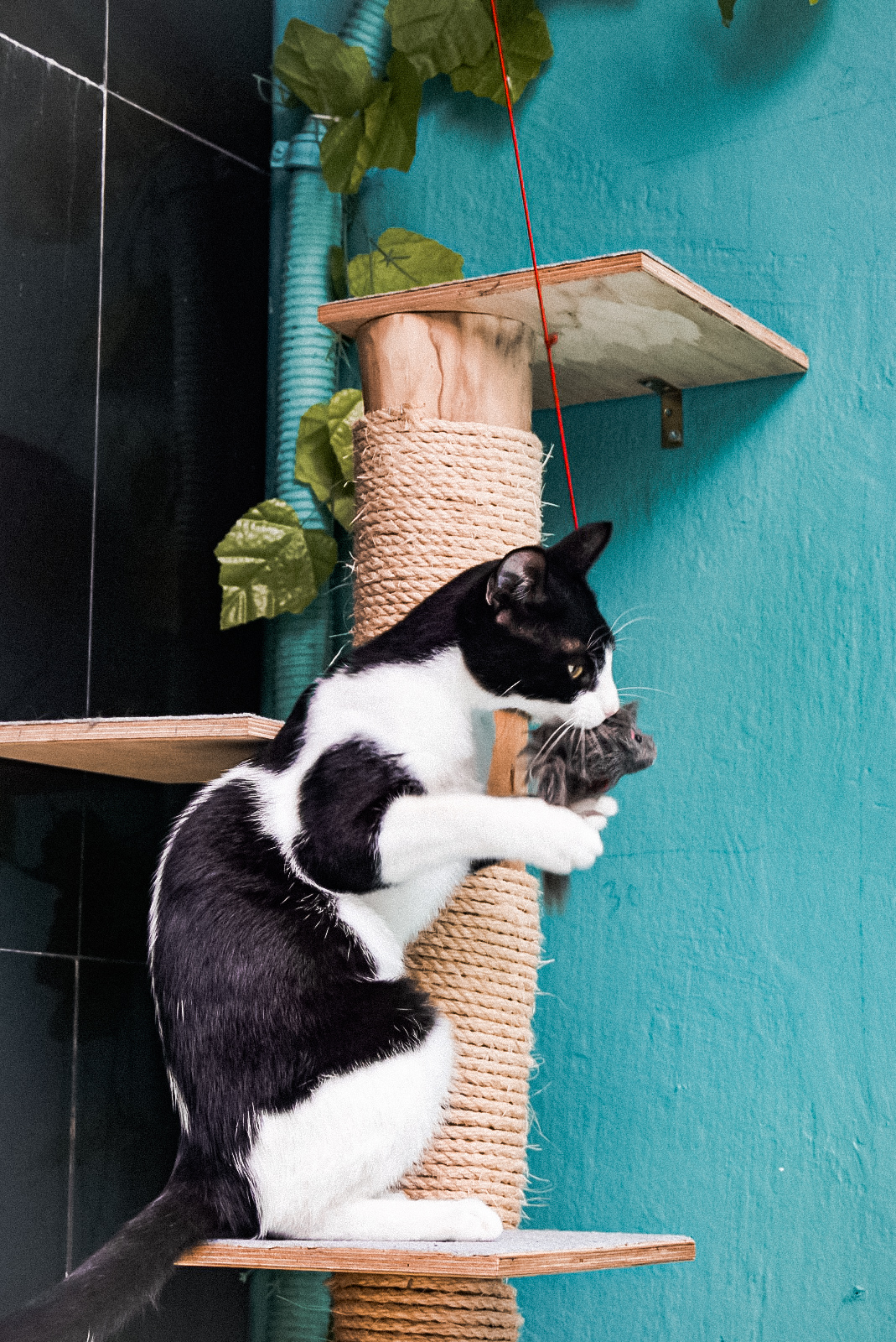 Είναι εύκολο να διακρίνεις την αγάπη που τρέφουν για αυτό που κάνουν, πόσο κόπο και δουλειά έριξαν για να δημιουργήσουν τον μαγικό γατόκοσμο του cat café. Άλλωστε, τον χώρο έχουν επιμεληθεί οι ίδιοι με τη βοήθεια φίλων τους, θέλοντας να βάλουν τον δικό τους χαρακτήρα και προσωπικά στοιχεία σε κάθε τι μέσα στο μαγαζί.