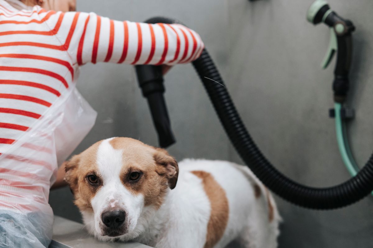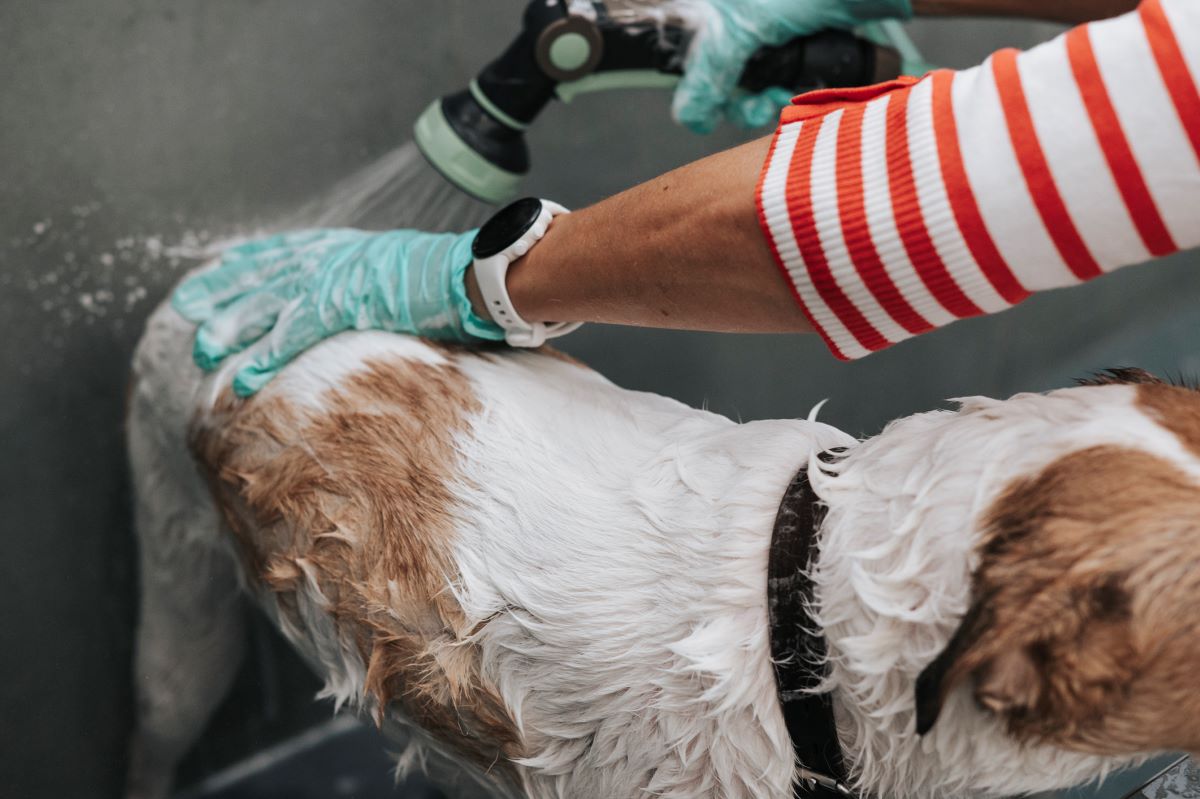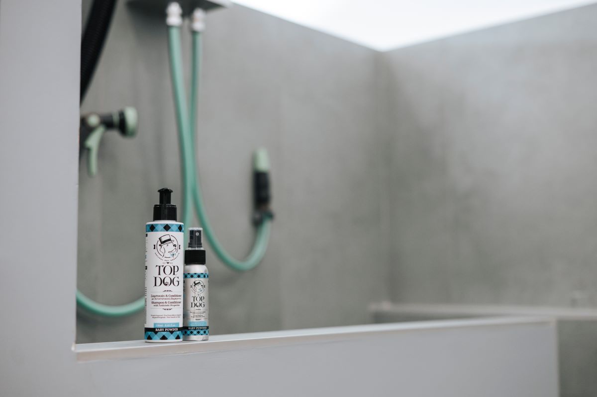 Τελειώνοντας το μπανάκι, αφήσαμε το κατοικίδιό μας στο «dog parking», έναν ειδικά διαμορφωμένο χώρο με χαλάκι, μαξιλάρι και νεράκι, μέχρι να καθαρίσουμε λίγο την μπανιέρα. Μην ξεχάσεις να πετάξεις τις τριχούλες από το διχτάκι στο σιφόνι, ώστε ο επόμενος επισκέπτης να βρει τον χώρο καθαρό.