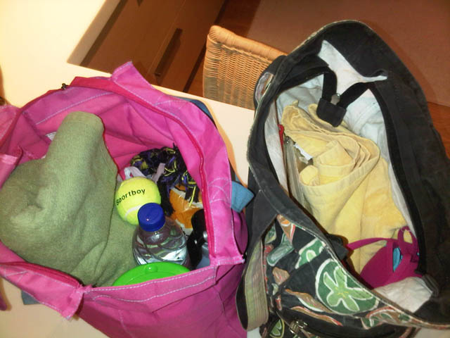 Νόμιζες ότι το μικρό σου δεν θέλει τα πράγματά του; Τι λες! Αν θέλει λέει.. Ξεκινώντας, πετσέτα, δική του φυσικά, παγούρι με νερό μαζί με έξτρα μπουκάλια δροσερό νερό γιατί θα τον πιάσει πολύ δίψα στην παραλία, πίστεψέ με. Μπαλάκι για παιχνίδι, φρίζμπι ή οτιδήποτε του αρέσει να του πετάς και να τρέχει. Αντηλιακό για σκύλους. Ναι, και όμως υπάρχουν. Οι σκύλοι καίγονται εύκολα εκεί που δεν έχουν πολύ τρίχωμα, μύτη, αυτιά κτλ. Ειδικά οι λευκοί! Κουτί πρώτων βοηθειών, όπου μέσα θα ήθελα να έχεις σίγουρα μια ένεση ατροπίνης για τυχόν δηλητηρίαση (ο κτηνίατρος σου θα σου εξηγήσει περεταίρω), κορτιζόνη για τσιμπήματα και πρηξίματα λόγω αλλεργίας, betadine μαζί με κάποια γάζα και επίδεσμο για τον όποιο τραυματισμό πάνω στην χαρά και στο τρέξιμο, τέλος φυσιολογικό όρο σε αμπούλες σε περίπτωση που του μπει κάτι στο μάτι. Θεωρητικά υπάρχουν και άλλα πολλά να βάλεις μέσα αλλά μετά θα με περάσεις για υποχόνδρια. Δεν είμαι… πολύ. Καλό πακετάρισμα λοιπόν!