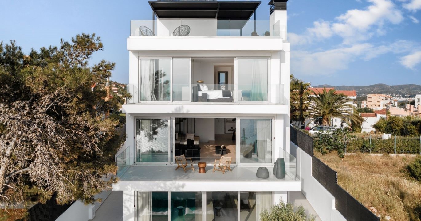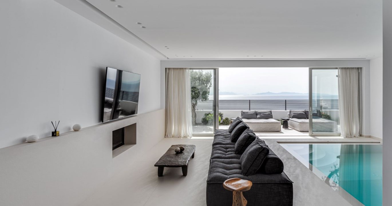 Αυτή η βίλα τεσσάρων υπνοδωματίων βρίσκεται στην πλαγιά ενός λόφου στην περιοχή Μαύρο Λιθάρι της Αττικής και προσφέρει απαράμιλλη θέα στην μαγευτική Αθηναϊκή Ριβιέρα που οι επισκέπτες μπορούν να απολαύσουν από κάθε γωνία. Στο εσωτερικό, οι χώροι αποπνέουν απλότητα, κομψότητα και μίνιμαλ αισθητική.