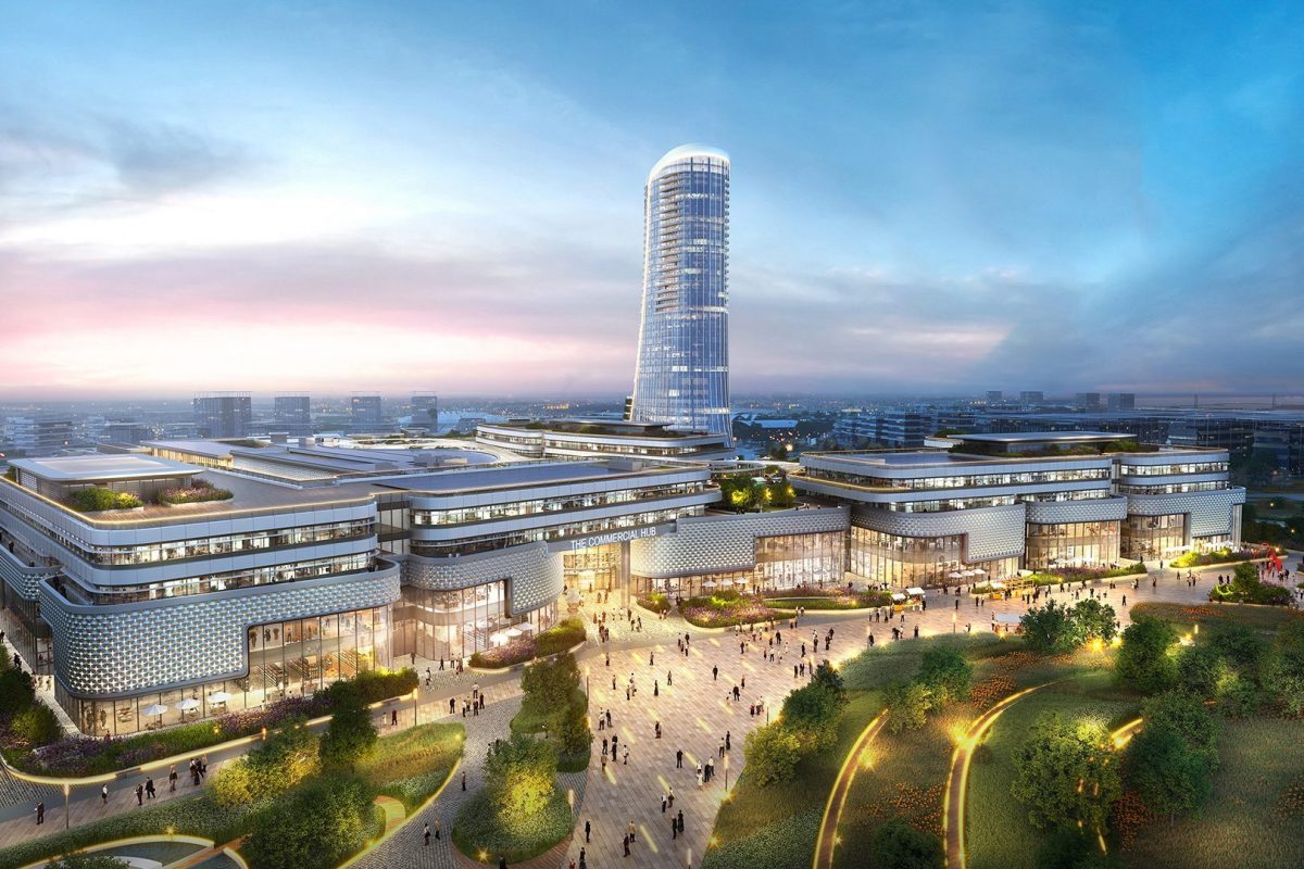 Το Commercial Hub θα δημιουργηθεί σύμφωνα με έναν υβριδικό σχεδιασμό του συγκροτήματος – από το αρχιτεκτονικό γραφείο AEDAS, με έδρα το Χονγκ Κονγκ- , ώστε οι εσωτερικοί χώροι να εναλλάσσονται με τους υπαίθριους, τις πλατείες και τους χώρους πρασίνου, διατηρώντας μια συνεχομένη ροή για περιπλάνηση σε όλους τους χώρους.