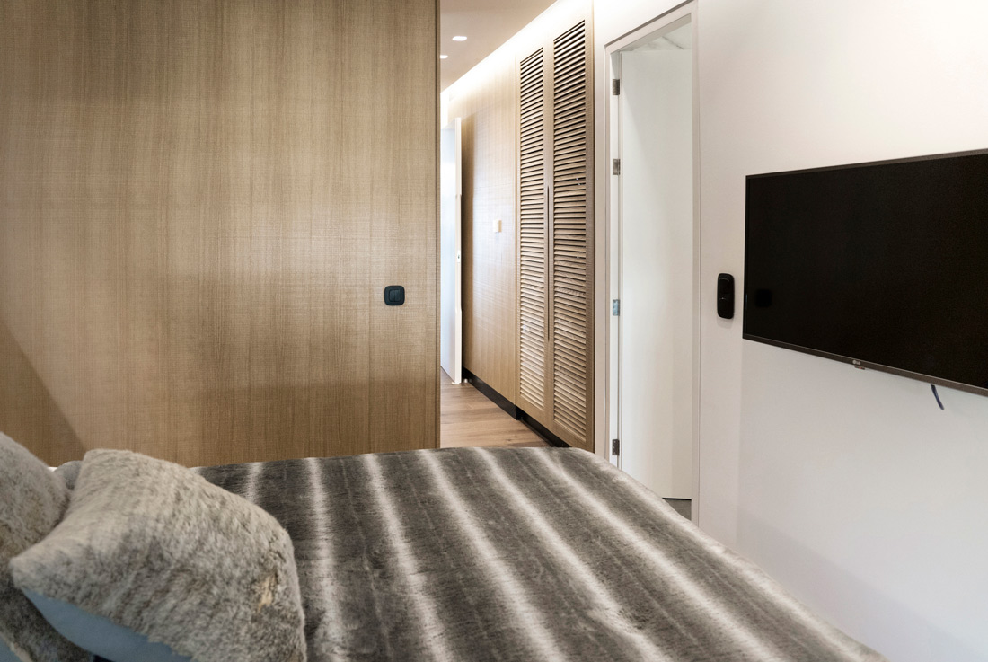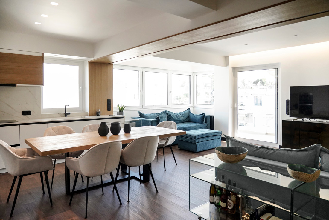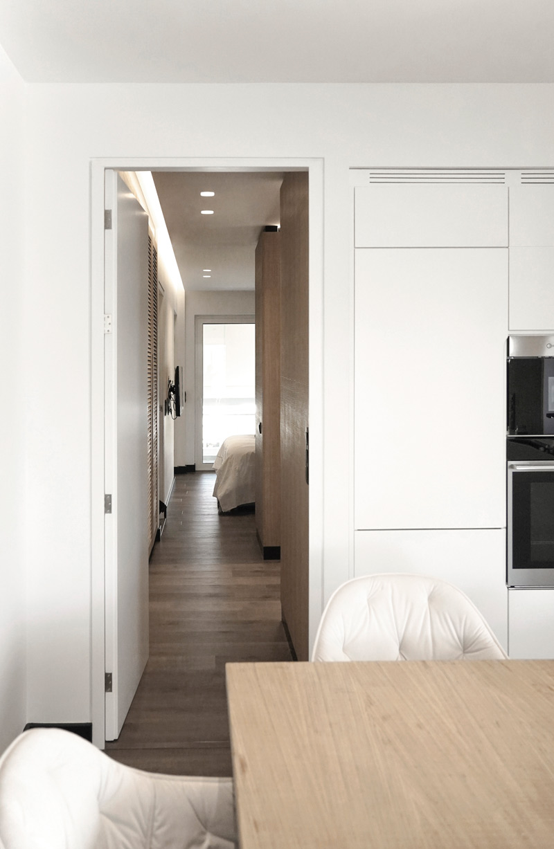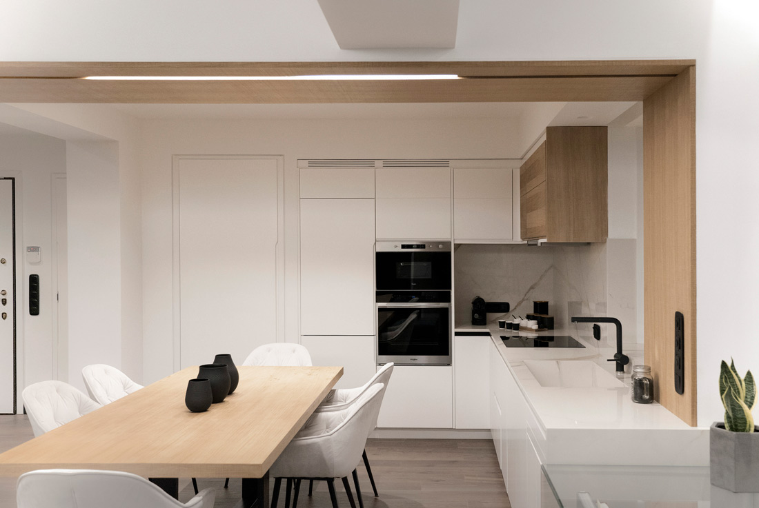 Το έργο που φέρει την υπογραφή του αρχιτεκτονικού γραφείου Labarch, αφορά την ανακαίνιση ενός διαμερίσματος 80τμ. που βρίσκεται στον τρίτο όροφο πολυκατοικίας του 1980 στη Βούλα- Ο σχεδιασμός του κινήθηκε σε minimal γραμμές με ενιαίες λευκές επιφάνειες που λειτουργούν ως ουδέτερος καμβάς για την ανάδειξη των ξύλινων επενδύσεων που προσδίδουν ζεστασιά στο χώρο.