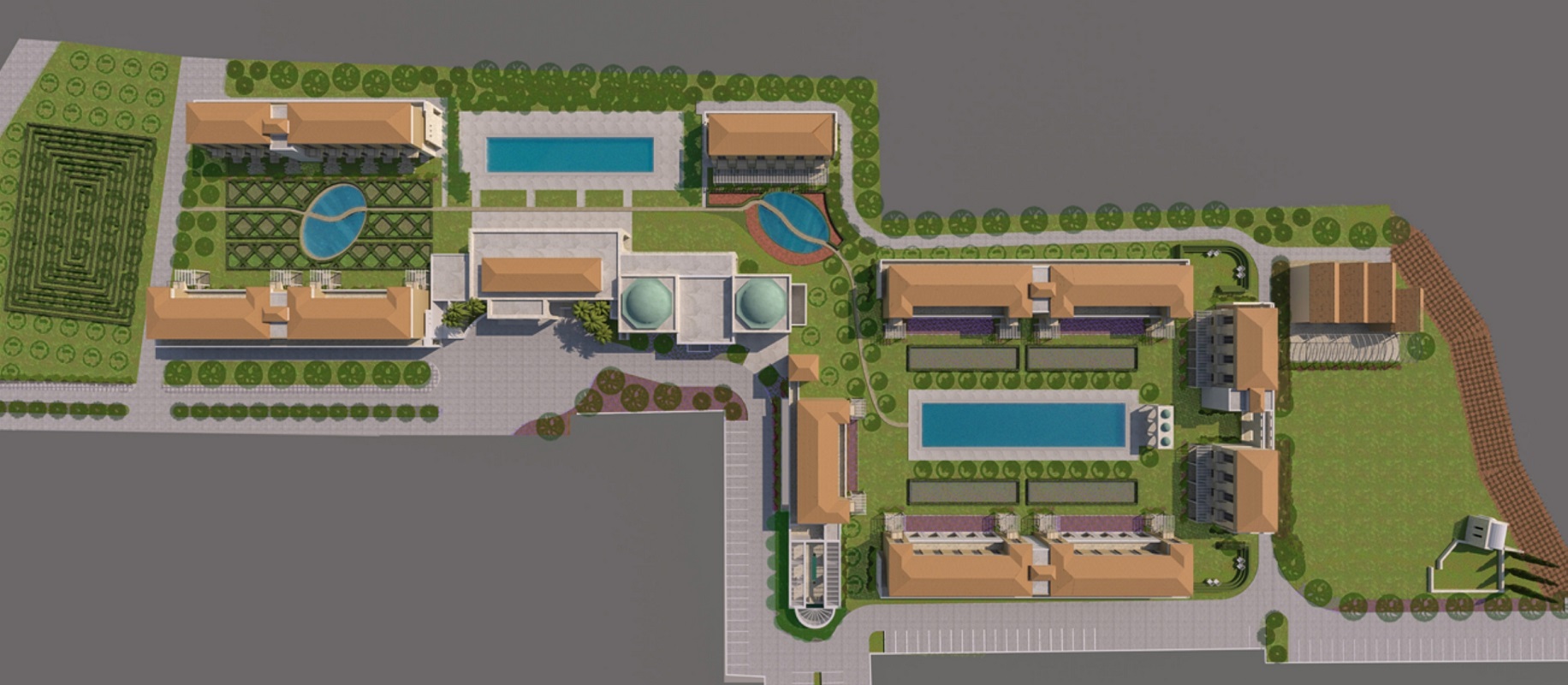 ⦁ 25 πολυτελείς ανεξάρτητες βίλες διαστάσεων 120-165 τ.µ., η καθεμία με αποκλειστικές πισίνες, κήπους και εκπληκτικές βεράντες