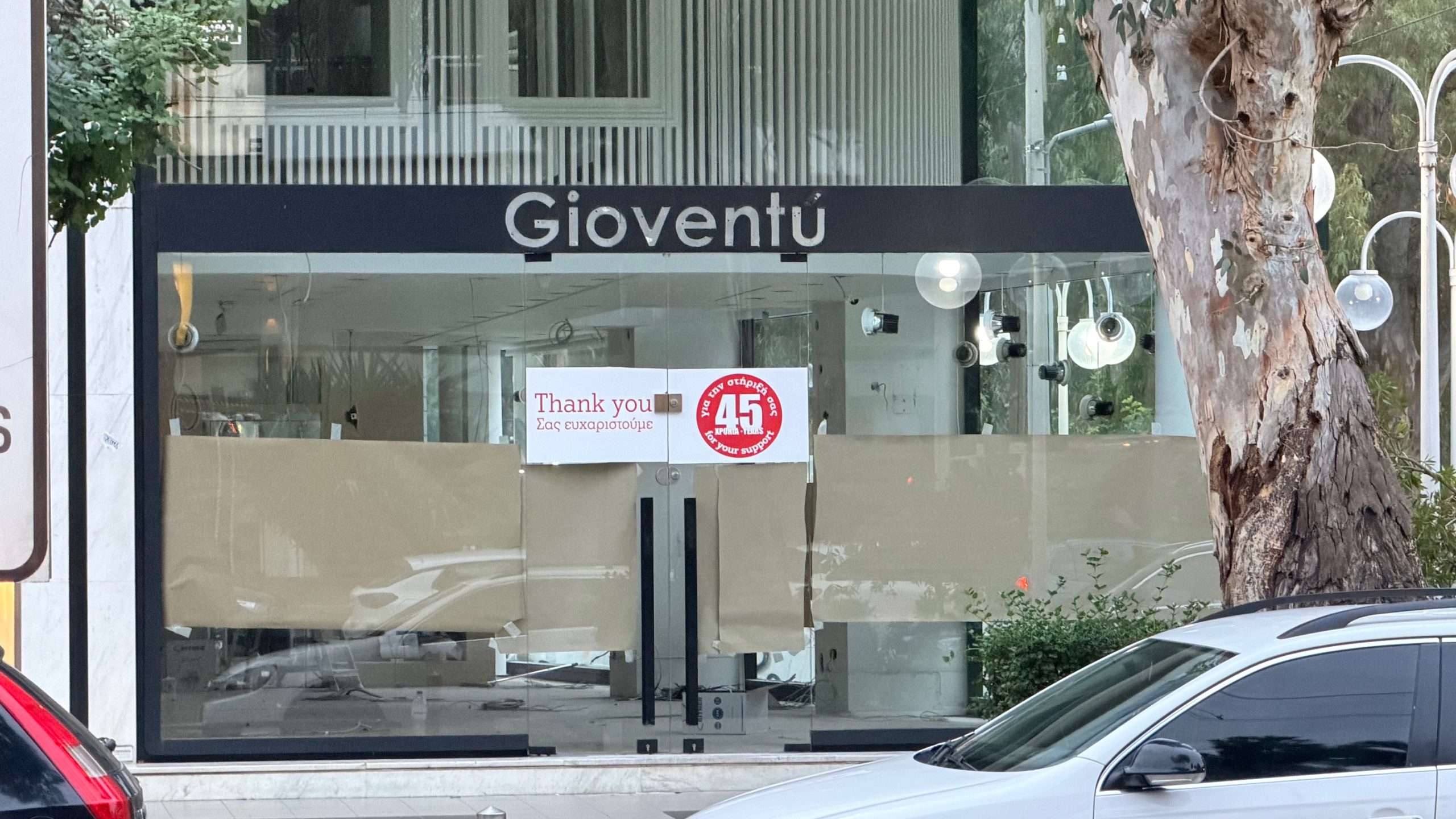 Το κατάστημα πώλησης γυναικείων υποδημάτων «Gioventu», το οποίο βρισκόταν στη γωνία της Αγγέλου Μεταξά 20, διέκοψε τη λειτουργία του, με τους ιδιοκτήτες του να ευχαριστούν με ανακοίνωσή τους την πελατεία τους για τη «στήριξή τους τα 45 αυτά χρόνια».