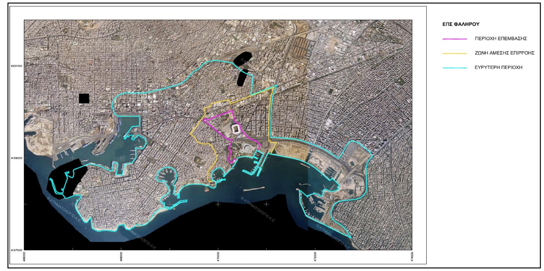 Αναλυτικότερα, η περιοχή επέμβασης του Ειδικού Πολεοδομικού Σχεδίου, συνολικής επιφάνειας 603.596,12τ.μ. οργανώνεται σε τρεις επιμέρους ζώνες, τις Α, Β και Γ με εμβαδά αντίστοιχα 261.874,09 τ.μ. 66.877,90 τ.μ και 274.845,13 τ.μ..